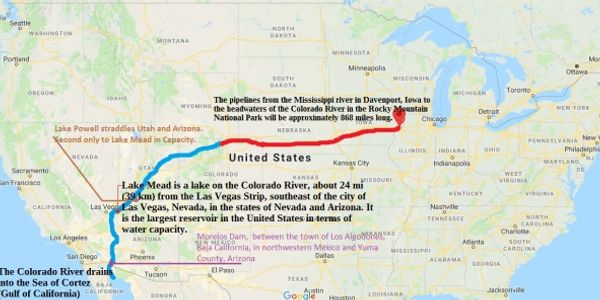 US Army Corps of Engineers’ construction of an aqueduct from the Old River Control Structure on the Mississippi River, carrying it to Lake Powell in Utah and Arizona, then supplying more water down the Colorado River to fill Lake Mead in Nevada.