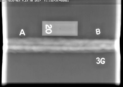 Because the contrast/brightness of an image can be adjusted, it is important to only evaluate acceptance of the weld or casting quality within the range of contrast/brightness that demonstrates the required IQI sensitivity. We have occasionally seen where an untrained technician will adjust the window and leveling to show the IQI only to have the weld totally obscured and then make the interpretation using different settings that doesn’t show the IQI and leads to an incorrect interpretation. When this happens it is primarily because of poor technique and/or improper selection or placement of the IQI.