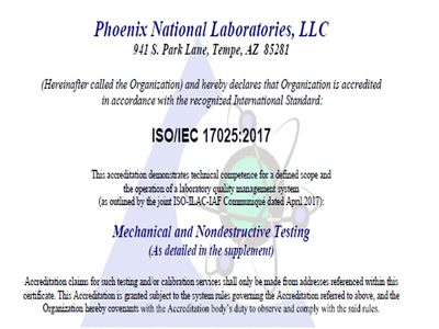 Phoenix National Laboratories (PNL), as well as our parent company, Applied Technical Services (ATS), are committed to providing a high level of testing and inspection services as evidenced by our many accreditations and technician and inspector certifications maintained as listed below.